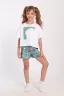 Комфортная пижама для девочки с ярким модным принтом "Картошка фри". Пижама детская состоит из футболки и шорт. Дизайн ткани позволяет использовать пижаму не только для сна, но и как костюм для дома. Материал очень мягкий и в то же время износостойкий, не скатывается и не вытягивается. Модель пижамы не сковывает движения ребенка во время сна. Покрой футболки оверсайз, укороченная, шорты классические без карманов. Пижама выполнена из 100% гипоаллергенного хлопка, что позволяет коже ребенка дышать во время сна.