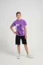 Костюм для подростков состоит из двух изделий - футболки и шорт. Футболка выполнена из ткани с абстрактным принтом. Футболка прямого свободного кроя, круглый вырез горловины, втачной рукав. Шорты выполнены из футера 2-х нитки, прямого кроя, с удобной посадкой. На передней половинке шорт - печать.