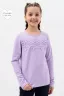 Блузка для девочек дошкольного, младшего и старшего школьного возраста, из однотонного трикотажного полотна кулирка с лайкрой. Блузка прямого силуэта, с втачным рукавом, без застежки. Спереди и на спинке отсутствуют линии членения. На передней части джемпера настрочено кружево по линии груди. Срез горловины обработан узкой окантовочной лентой из того же полотна в 4 сложения. Рукав одношовный, длинный. Низ рукава без манжеты, подогнут. На кружево приклеены 3 полубусины.