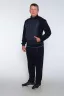 Мужской спортивный костюм. Ветровка на молнии, два боковых кармана также на молнии, воротник - стойка, рукава и низ кофты на манжете, спереди вставка из плащевки. Брюки прямого кроя, пояс на резинке, два боковых кармана на молнии с вставкой из плащевки. Также имеется на кофте и брюках декоративная вышивная эмблема. Приятная к телу ткань, не скатывается и не теряет форму. Костюм подойдет для спорта, для повседневной носки, для дачи.