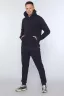 Костюм мужской изготовлен из качественного футера трехнитки с начесом, идеальный вариант для холодных зимних дней. Толстовка с капюшоном, дополненным шнуром и карманом-кенгуру. На груди изделия выполнена текстовая вышивка-логотип. Брюки на резинке, для дополнительного регулирования объема талии имеется шнурок. Два боковых кармана без молнии. Брюки так же украшены вышивкой.