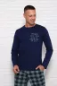 Комфортная мужская пижама из 100% хлопка - брюки в клетку с боковыми карманами, на эластичном поясе и футболка с длинным рукавом и стильным принтом на полочке. Данная модель пижамы составляет комплект Family look с женской пижамой (арт. 1036).