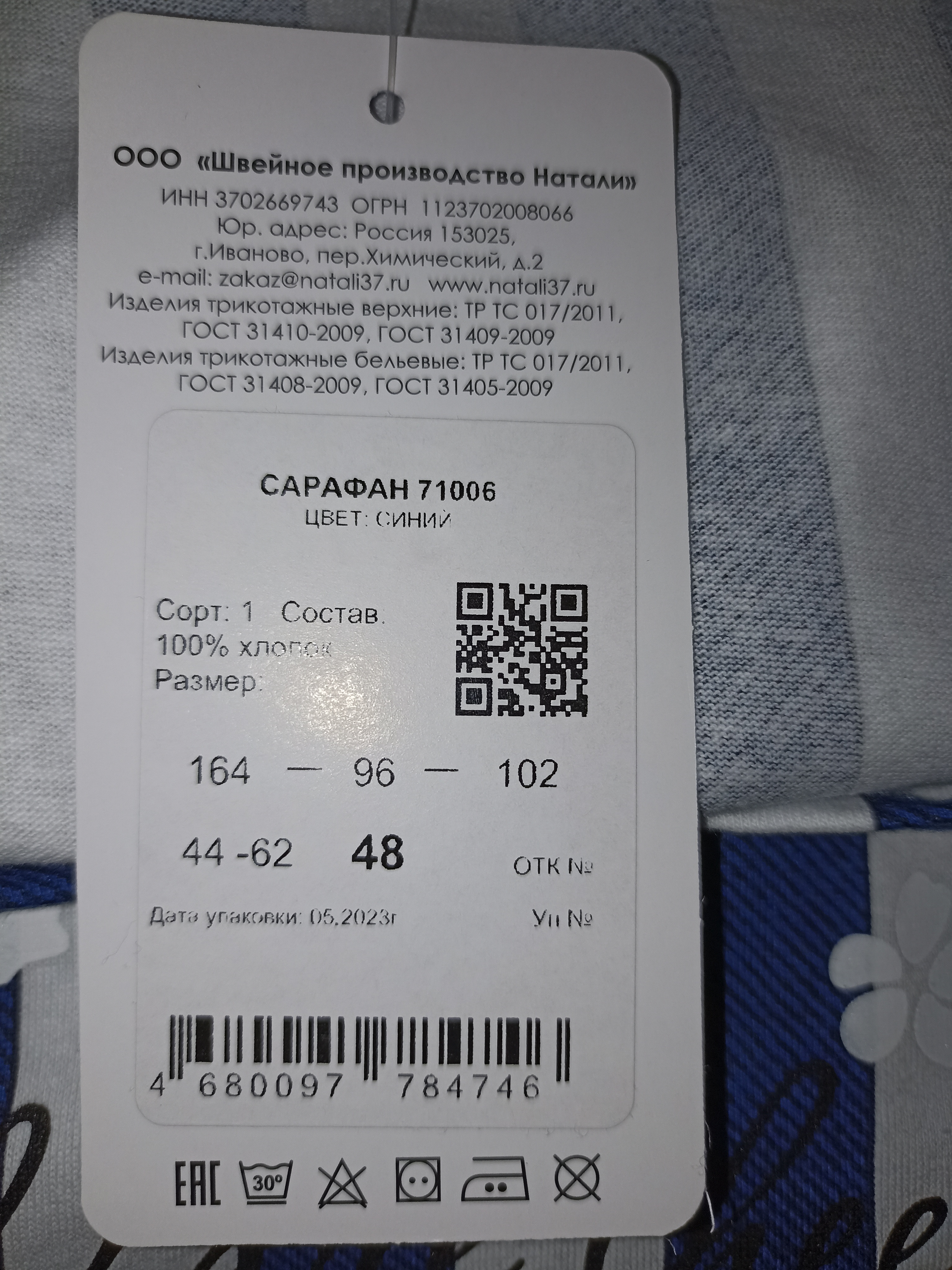 Заказывала платье арт.4428, думала на дачу. Но оно очень даже и ничего, иожно и в городе носить, трикотаж мягкий, пошив качественный, рисунок - не клей. Ещё трико Север и брюки. Арт. 22231. Трико с лёгким начёсом, х/б, а брюки хоть и заявлен состав 50/50, по ощущениям всёж синтетика, хоть и мягкая. Пошиты хорошо. Заказ пришёл быстро. Довольна, буду заказывать ещё.