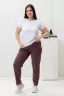 Брюки свободные в верхней части и зауженные к низу, длинные, с карманами, со складками спереди по шву притачивания пояса, на эластичном поясе.