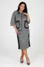 Костюм включает в себя прекрасный жакет на молнии и юбку прямого кроя. Жакет снабжен накладными карманами и эффектной накладной молнией, которая имитирует прорезной карман. Рукава костюма имеют длину три четверти и оформлены манжетами. Юбка прямая и оснащена молнией, а также имеет шлицу на нижней части изделия. Костюм дополнен черной отделкой на жакете и юбке, придавая ему особую изюминку. Костюм изготовлен из прочной и качественной ткани академик, которая состоит из 75% полиэстера, 20% вискозы и 5% спандекса. Это обеспечивает комфорт и свободу движений, а также сохраняет превосходный вид костюма после многочисленных стирок и износа.
