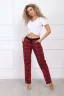 Брюки женские прямого кроя, в клетку, с удобными карманами в боковых швах, пояс эластичный, прошит на поясной машине, на поясе декоративный шнурок. Хлопок 100%.