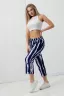 Брюки женские, полуприлегающие, длина 7/8, пояс выполнен на многоигольной машине. На передних половинках брюк внутренние карманы. Внизу брюк цельнокроеные манжеты.