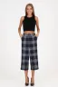Укороченные брюки с боковыми карманами. Широкий пояс застегивается на пуговицу.