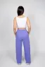 Брюки женские прямого силуэта. Пояс отрезной, выполнен из основного полотна, с эластичной тесьмой внутри. К верхнему срезу поясу притачена резинка, но выглядывает из пояса. На резинке декоративная нашивка. Надпись переводится как "Модный стиль". Модель рассчитана на рост 164-170см.