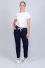Женские брюки прямого кроя, внизу декоративный шов, пояс на резинке с регулируемым шнурком. По бокам два кармана с отрезным бочком. Отлично подойдут для прогулок и для занятий спортом.