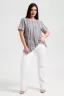 Футболка женская полуприлегающего силуэта. Рукав втачной короткий. Вырез горловины круглый. В боковом шве утяжки из декоративной тесьмы.