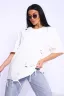 Рваная женская футболка. Oversize подходит всем типам фигур. Изготовлена из хлопка, очень плотная и не просвечивает. Свободная посадка и прямой крой. Длинная хлопковая футболка отлично подойдёт для создания повседневных образов. Дырки расположены на рукавах, плечах и спереди. Рукав спущенный и не сковывает движения. Длина рукава указана от плечевого шва. Производство Китай.