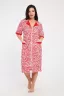 Халат выполнен из футера с начёсом с рисунком зебры в красно-белых тонах. Рукав средний, с накладными карманами, застежка-молния, длина ниже колена, очень приятный к телу.