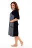 Мягкий женский халат из велюра. Пятнистый дизайн, однотонные рукава и вставки, застегивается на молнию, рукава ниже локтей, по бокам карманы, длина приблизительно до коленей. Размеры от 46 до 62. Имеется возможность приобрести данный товар по розничной цене.
