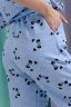 Костюм состоит из туники и брюк. Туника с округлой горловиной, обработанной отделочной рибаной. На полочке расположен декоративный карман с молнией. Рукав короткий. Горловина спинки обработана бейкой из основного полотна. Брюки прямые, на поясе, с боковыми карманами.