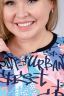 Костюм женский состоит из футболки и бриджей. Футболка с коротким рукавом, бриджи с карманами. На полочке принт.