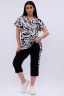 Женский костюм из футболки и бриджей — отличный выбор для дачного сезона и прогулок. Бриджи черного цвета из 100% хлопка обеспечивают комфорт и свободу движения, что особенно важно для активного отдыха на свежем воздухе или дома.