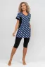 Женский костюм полуприлегающего силуэта состоит из туники и бриджей. 100% дышащий хлопок туники и эластичная вискоза бриджей несут в себе удобство при носке, гигроскопичность и износостойкость. V-образный вырез горловины придаёт изделию женственный вид. Для удобства туника имеет вместительные накладные карманы и втачные рукава с манжетами. Рельефы на полочке изделия создают идеальную посадку и безупречный внешний вид. Бриджи на резинке с высокой посадкой. В костюме такого плана Вы будете чувствовать себя комфортно как дома, так и на любимой даче. Эта двойка идеально подойдет для летнего отдыха на даче, на море или просто для девушек, которые хотят чувствовать себя уютно и комфортно дома. Летний женский костюм подходит для поездок и путешествий, загородного отдыха на природе, а также для получения лечения в больнице или санатории. Повседневное хлопковое изделие с бриджами - отличная идея для подарка любимой жене, маме, сестре или подруге на день рождения, 8 Марта или по любому другому приятному поводу. Рекомендация: для того чтобы продлить яркую жизнь Вашему костюму для дома и отдыха из хлопка, стирку производить при температуре не выше 30 градусов, а во избежание деформации изделия не прибегать к ручному отжиму (не перекручивать), утюжить слегка недосушенное изделие утюгом на паровом режиме. Покупайте наши красивые и удобные домашние костюмы с бриджами и носите с удовольствием! Приятных покупок!