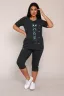 Комплект состоит из футболки и бриджей. Свободная футболка. Бриджи плотно прилегающие. Комплект подойдет на любой тип фигуры.