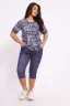 Костюм женский выполнен из трикотажного полотна кулирка. Костюм состоит из футболки и бридж. Футболка свободного силуэта. Бриджи свободного кроя чуть ниже колен.