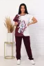 Костюм беру 2 раз, ранее коричневый, сейчас фиолетовый. Костюм удобный, нарядный, не только для дома. Делала уже много заказов, всё нравится.