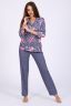 Женский костюм-пижама, состоящий из рубашки и брюк. Комплект сшит из трикотажного полотна нового поколения с цифровой печатью, которая не меняет цвет рисунка в процессе стирки. Содержание полиэстера в ткани позволяет изделию не менять свою форму в процессе носки и практически не мнется. Усадка костюма минимальна. Жакет-рубашка на пуговицах, воротник в английском стиле из ткани компаньона. Рукав 3/4, низ с имитацией манжета. Брюки на широкой резинке, низ брюк выполнен с имитацией манжета. Широкий размерный ряд с 44 по 56, большой ассортимент ярких расцветок на любой вкус. Можно носить, как домашний костюм и как пижаму. Рубашка свободного кроя для удобства домашнего ношения. Любителям носить в обтяжку рекомендуется брать на размер меньше (см. параметры в сантиметрах). Рекомендована стирка при 30-40 градусах в стиральной машине. Отличный подарок любимым женщинам.