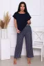 Костюм очень удобный и приятный к телу, ткань натуральная, хорошо сидит по фигуре. Немного смущает полоска - кажется, визуально добавляет объем, но качество ткани компенсирует этот маленький минус.