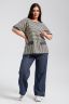 Костюм состоит из туники и брюк. Туника прямого силуэта, с округлой горловиной, с удлиненной спинкой, длиной до середины бедра. Спинка с кокеткой. В нижней части боковых швов обработаны разрезы. Рукав короткий, с манжетом. Горловина обработана бейкой из отделочного полотна. Брюки прямые, свободные, на поясе, с боковыми карманами. В нижней части боковых швов брюк обработаны шлицы с отделочными пуговицами.