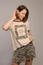 Комплект с шортами из вискозного полотна. Футболка прямого силуэта, очень объемная с коротким рукавом и печатным рисунком имитирующим расцветку шорт. Шорты средней длины с коническим расширением к низу на притачном поясе с резинкой. Комплект выполнен в стиле "ОВЕРСАЙЗ", рекомендуется брать на 1 размер меньше.