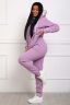 Костюм женский из футера 3-х нитки с начесом. Состоит из толстовки с капюшоном и брюк. Толстовка прямого силуэта, низ на поясе. Рукав втачной на манжете. Капюшон - воротник хомут, с люверсами и шнуром. Подкапюшон из велсофта. Карманов нет. Брюки прямого кроя, на манжете по низу изделия. В боковых швах выполнены карманы. Пояс отрезной, на резинке 4см. шириной.