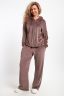 Костюм женский велюровый состоит из толстовки на молнии и брюк. Толстовка с глубоким капюшоном, по низу утягивающий шнур с фиксаторами, рукав спущенный с манжетом, брюки прямые с карманами. Костюм мягкий, удобный, отлично подойдет для дома, прогулок и отдыха.