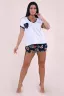 Женская пижама с шортами "Ананасы" представляет собой комплект из футболки с коротким рукавом и шорт, изготовленный из 100% хлопка (кулирка), доступный в широком размерном ряду, включая большие размеры.