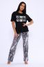 Пижама футболка и брюки. Футболка полуприлегающего силуэта с коротким рукавом.Брюки прямые,на резинке.
