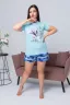 Пижама женская состоит из футболки с коротким рукавом и шортов. Футболка из однотонной кулирки с красивым принтом, шорты свободного покроя из ткани кулирка набивка в клеточку. Пижама для сна и дома. После стирки не меняет цвет и форму.