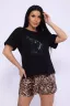 Пижама женская с шортами леопард. Данная модель выполнена из трикотажного полотна кулирка хлопок 100%. Отличная модель для дома и отдыха. Футболка свободного покроя со спущенным рукавом. На полочке футболки присутствует принт.
