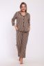 Пижама женская с брюками. Рубашка прямого, свободного кроя на пуговицах с имитацией кармана на груди. Воротник фигурный. Кроя полочки, рукав и воротник обработан внутренней окантовкой. Брюки с карманами, длина по щиколотку.