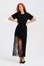 Женское платье ассиметричного кроя с бахромой по низу. Одним из самых популярных элементов летнего гардероба является летнее трикотажное платье. Благодаря легкой ткани и свободному крою обеспечивает комфорт и свободу движений. Плате с бахромой - прекрасный вариант для пляжного отдыха.