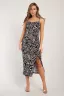 Платье на тонких бретелях с кулиской на полочке, благодаря которой, можно регулировать сборку и длину выреза на ноге.