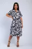 Женское элегантное платье выполнено в свободном стиле, представлено в трех расцветках, с узорами. Изделие имеет округлую горловину с V - образым вырезом, рукава цельнокроеные. На задней и передней полочке имеются складочки, которые украшают платье и делают его низ волнообразным. Такая модель подойдет для жарких летних прогулок, на работу в офис, и за счет того, что оно просторное - для дома