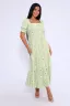 Легкое и дышащее летнее платье из хлопка. Платье в длине миди с пышными рукавами и квадратным вырезом подчетркивает декольте и визуально удлинняет шею. Платье А-силуэта состоит из нескольких соединенных рядов-ярусов, линия талии платья чуть завышена. Модель не сковывает движения и комфортно садится по фигуре. Оно универсально и может быть использовано как вечернее, так и повседневное платье. На моделе представлен 46 размер. Параметры модели 165 см,97-71-101
