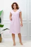 Сорочка женская из кулирного полотна, состав 100% хлопок. Горловина сорочки с отделкой из кружева, рукава обработаны окантовкой, низ сорочки обработан декоративной строчкой. Легкая в уходе.