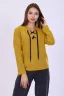 Джемпер женский из мягкого вязаного трикотажа. V-образный вырез горловины декорирован люверсами и шнуром, спущенная пройма, длинный рукав. Джемпер комфортный, универсальный, создаст неповторимый стиль для модницы любой фигуры и возраста. С наступлением холодов эта вещь становится основой всего базового гардероба, отличным офисным вариантом.