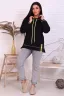 Интересный лонгслив с декоративным элементом, находящимся в левом нижнем углу изделия. Расположенный сверху хомут очень гармонично подходит под модель, а неоновый шнур дополняет нитки и декор. Снизу изделия по бокам находятся разрезы. Лонгслив выполнен из футера 2-х нитки: 73% хлопка, 22% полиэстер, 5% лайкра, плотностью 220 гр.