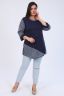 Туника прямого покроя. Округлая горловина отделана кантиком, рукав 3/4 на манжете, передняя полочка удлиненная.