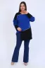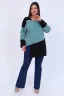 Туника женская, комбинированная, прямого силуэта, спущенный рукав 3/4 с широкими манжетами, длина рукава от шва. Горловина с обтачкой, справа декорирована втачной молнией. Фигурный v-образный низ декорирован вшивной молнией. Удобно и практично.