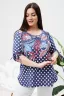 Туника женская свободного силуэта. На полочке застроченные вертикальные складки, декорированные пуговицами. Рукав ¾ с завязками.