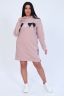 Туника женская из мягкого футера с лайкрой 2-х нитка, качества карде. Модель с капюшоном, спущенная пройма, длинный рукав и низ туники обработаны широким манжетом. На передней полочке стильный принт в виде сердец и в виде шеврона внизу, в боковом шве функциональная декоративная молния. Модное, уютное платье отличный вариант офисного гардероба для современной деловой девушки.