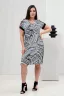 Туника полуприлегающего силуэта, длинной ниже колена, с округлой горловиной, с боковыми карманами. Рукав реглан, короткий, на манжете из отделочного полотна. Вдоль рукава расположены фигурные элементы. Полочка с лампасами из отделочного полотна вдоль боковых швов. Горловина обработана обтачкой из основного полотна.