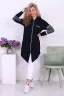Туника необычного кроя из футера с лайкрой. Длинные рукава, общая длина до коленей спереди, более коротко по бокам. На молнии, с капюшоном. Дизайн в виде принтов с надписями