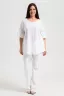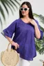 Туника женская, расширенная к низу. Горловина округлая. Рукав реглан, внизу рукава широкая рюша. Низ туники фигурный, в боковых швах внутренние карманы. Свободная, легкая, не стесняющая движений туника незаменима для летнего гардероба любой женщины.